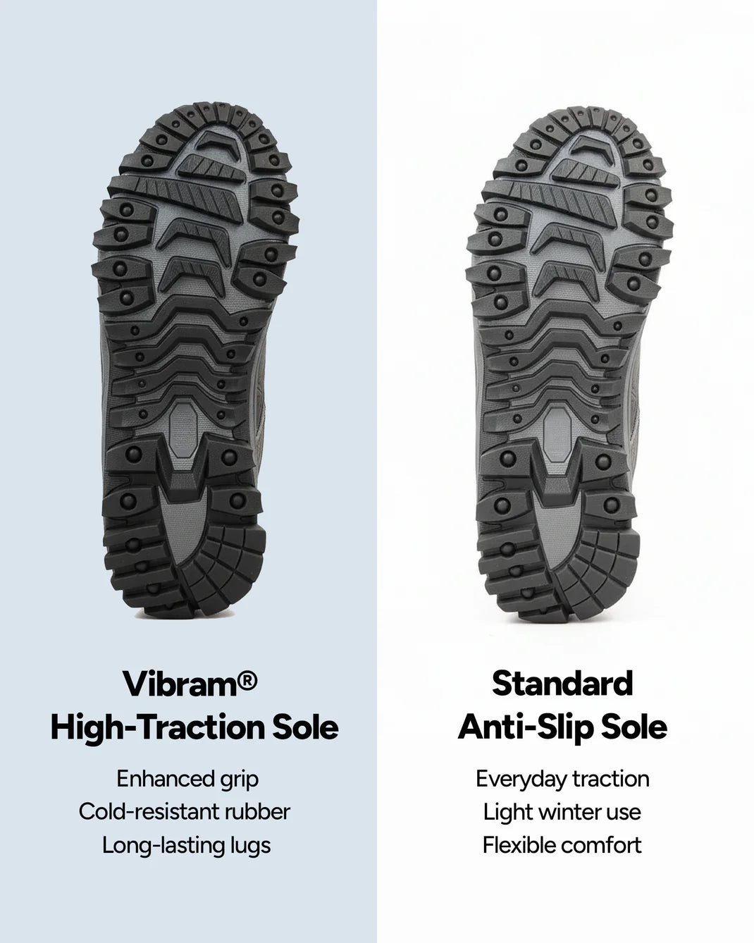 Choosing the right sole doesn’t just affect traction, it determines how safe and comfortable you’ll feel throughout the winter season.